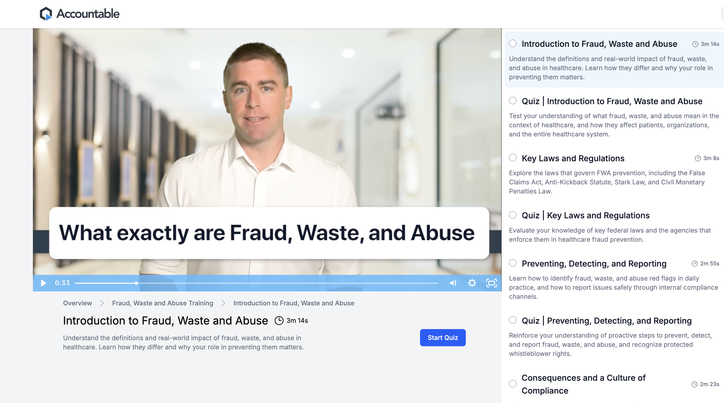 Fraud, waste, and abuse don’t just threaten compliance—they can damage trust, drain resources, and put patients at risk. With this training, your employees gain the knowledge to make informed, ethical decisions and protect your organization from unnecessary risk.:trophy: Completion & Certification