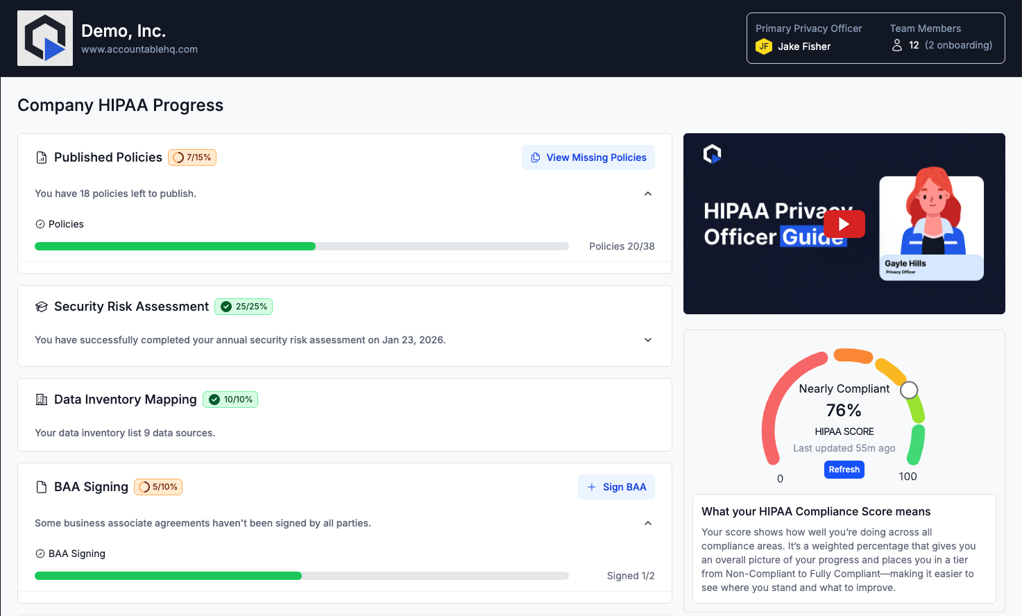 You can find the Privacy Officer Guide widget directly on your dashboard, or access it anytime from the Assign Privacy Officers page.