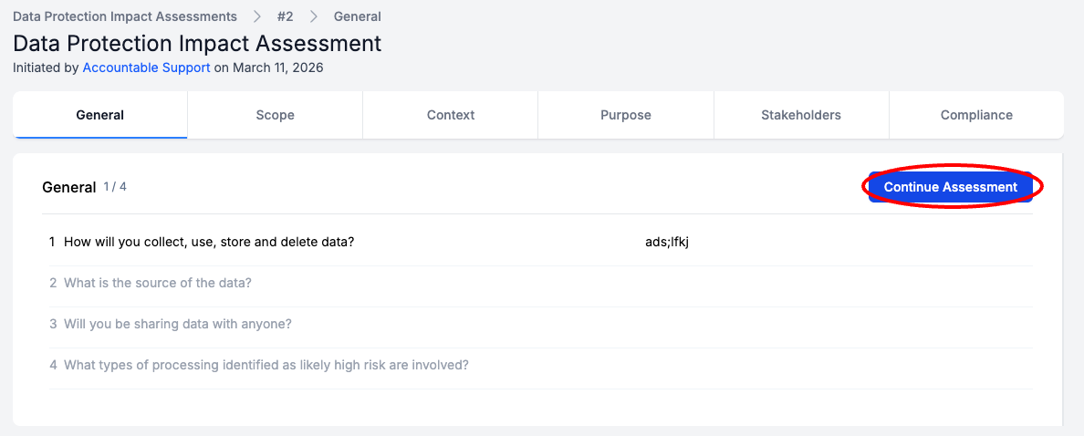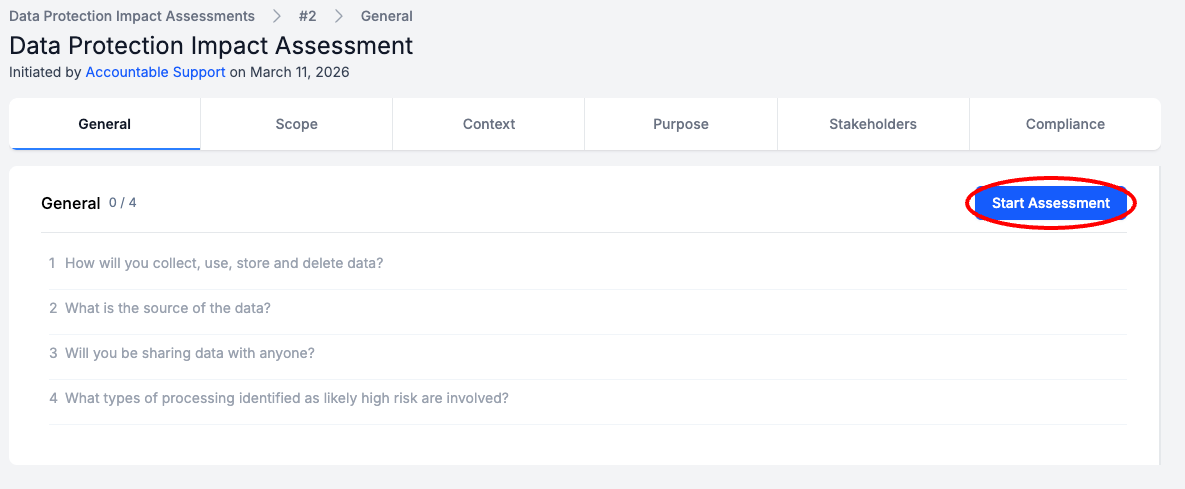 The DPIA documents the current state of your Organization's GDPR Compliance setup. Your answers to the Assessment questions will be vastly different before and after going through the initial GDPR Compliance Setup steps. Therefore, our suggestion is to start by going through your initial GDPR Compliance setup before completing your organization's DPIA.