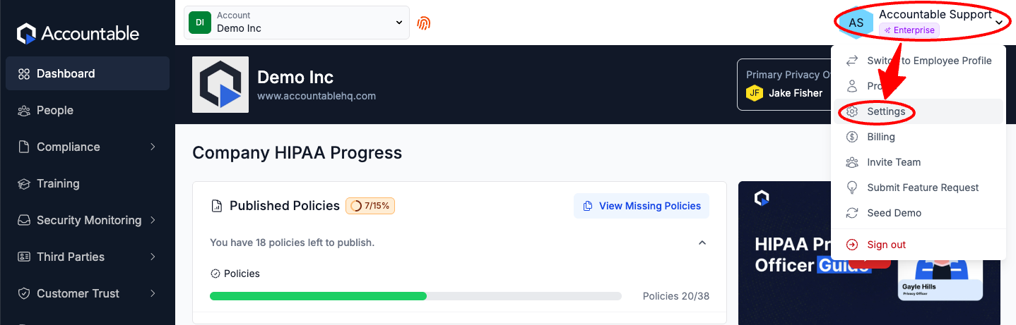 How to Assign an Admin UserSteps Assign Admin Access Assign Admin Access From the Dashboard, in the top right corner Select your Name > Select Settings Select the Admins tab Select Assign Admin Select a Team Member > Select Assign Admin Updated 18 days ago How to Reset/ Reassign Training & Team Member RequirementsTeam Member TrainingAsk AI