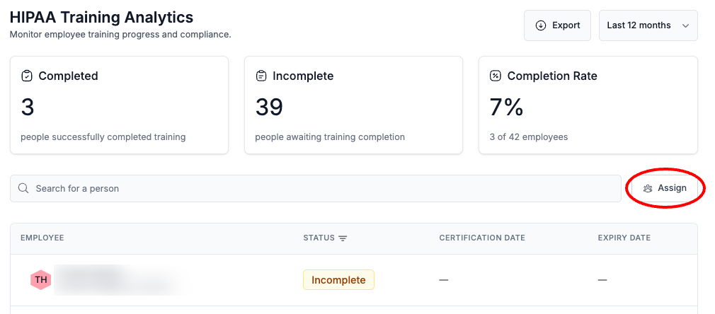 REMINDER: This is a recurring element of HIPAA Compliance. Each of your Team Members need to complete required trainings every 12 months.