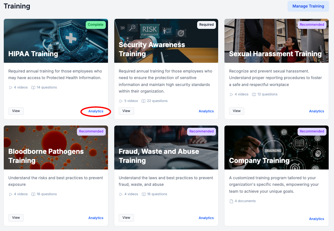 Select Analytics for the Training Course you would like to Assign to Team Members
