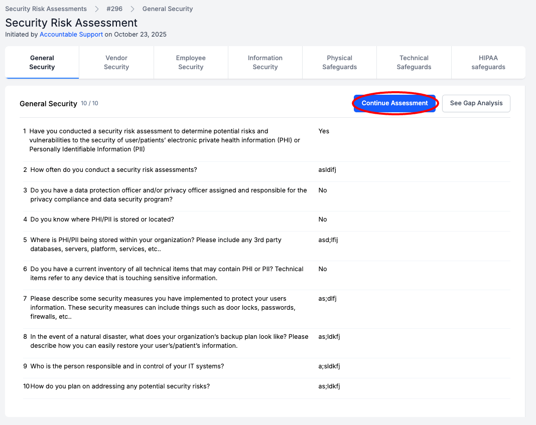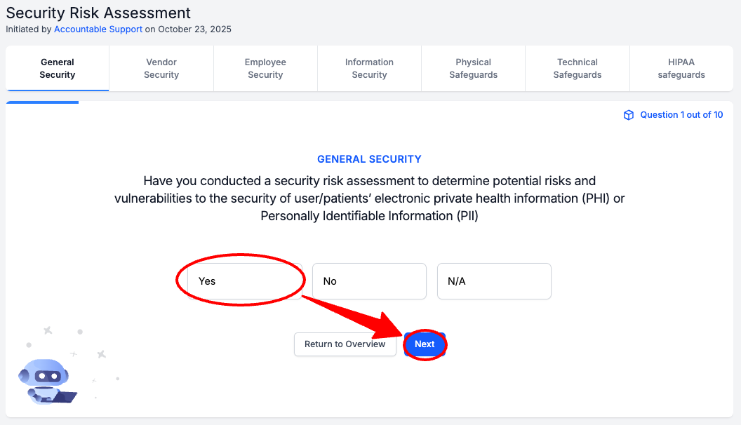 **Tip! ** This Security Risk Assessment is from HHS – Accountable did not write these questions. Some of the questions are vague. Answer each question to the best of your ability!