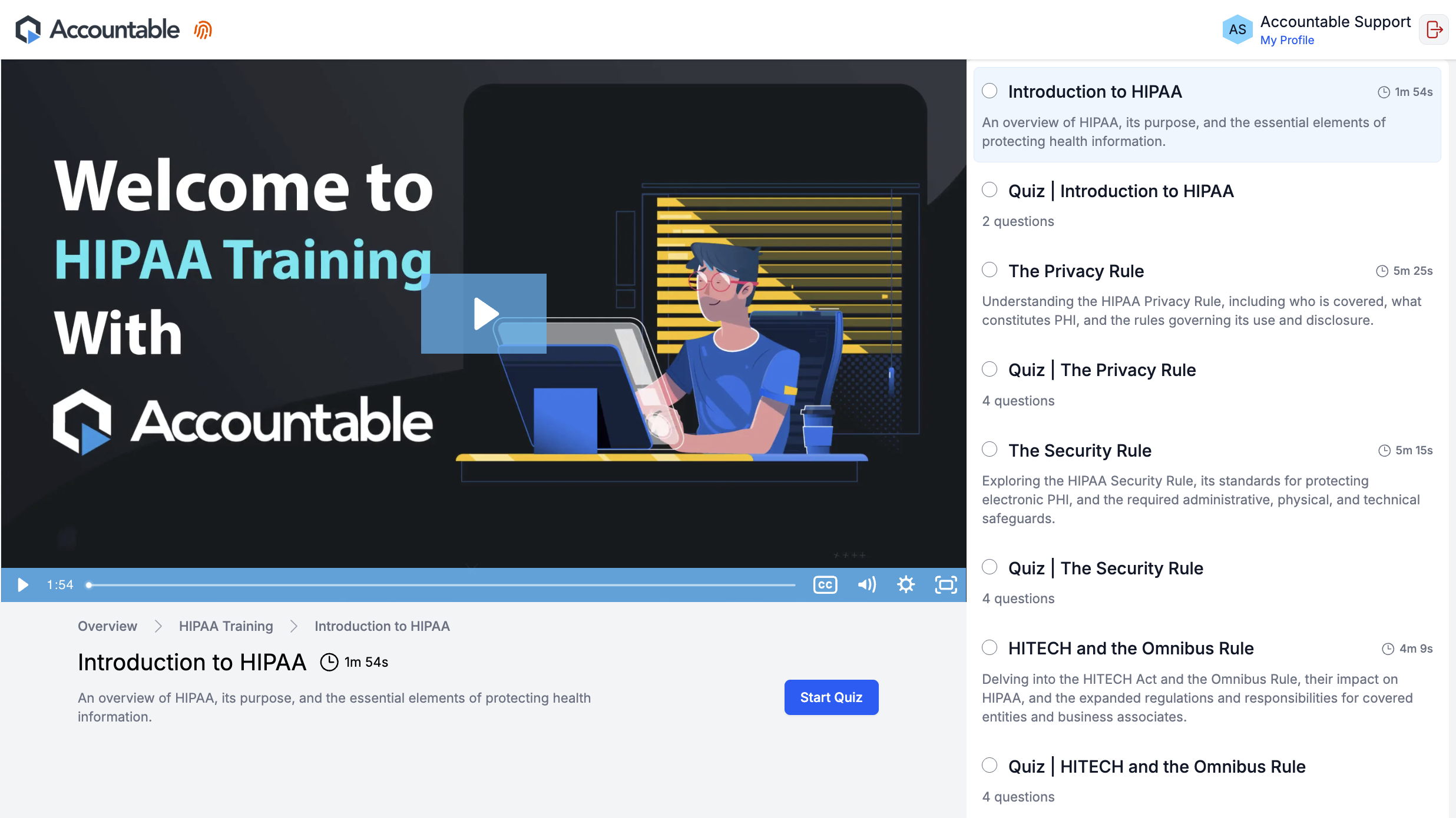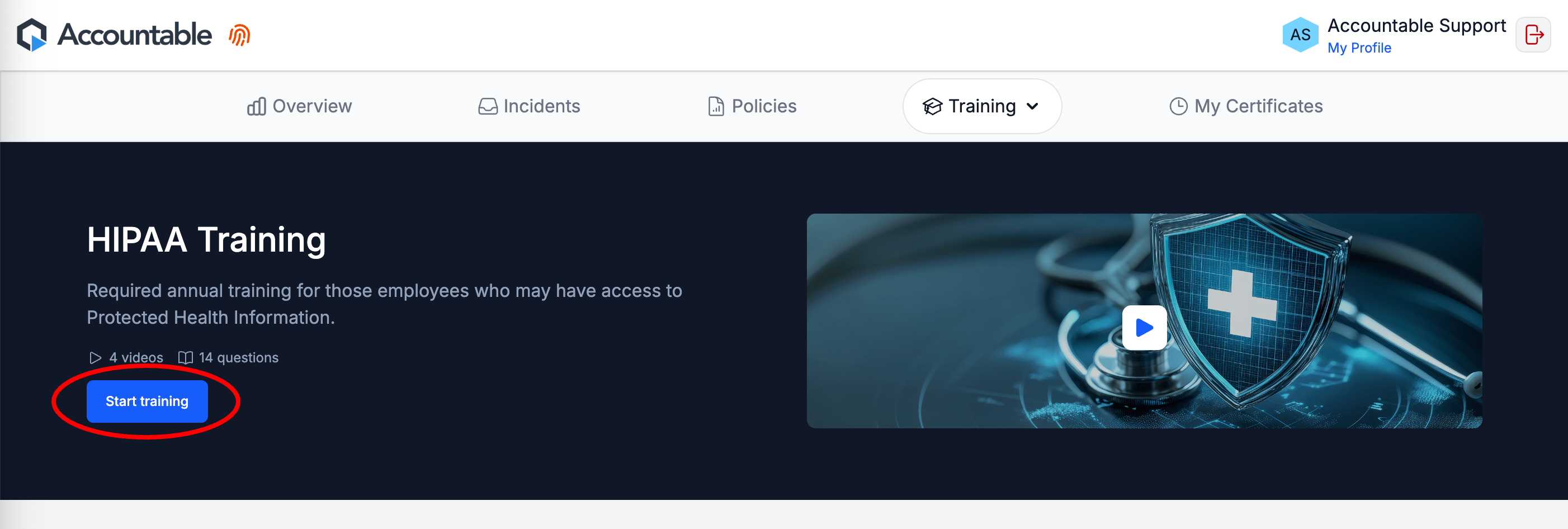 Complete Training by watching videos, and passing quizzes