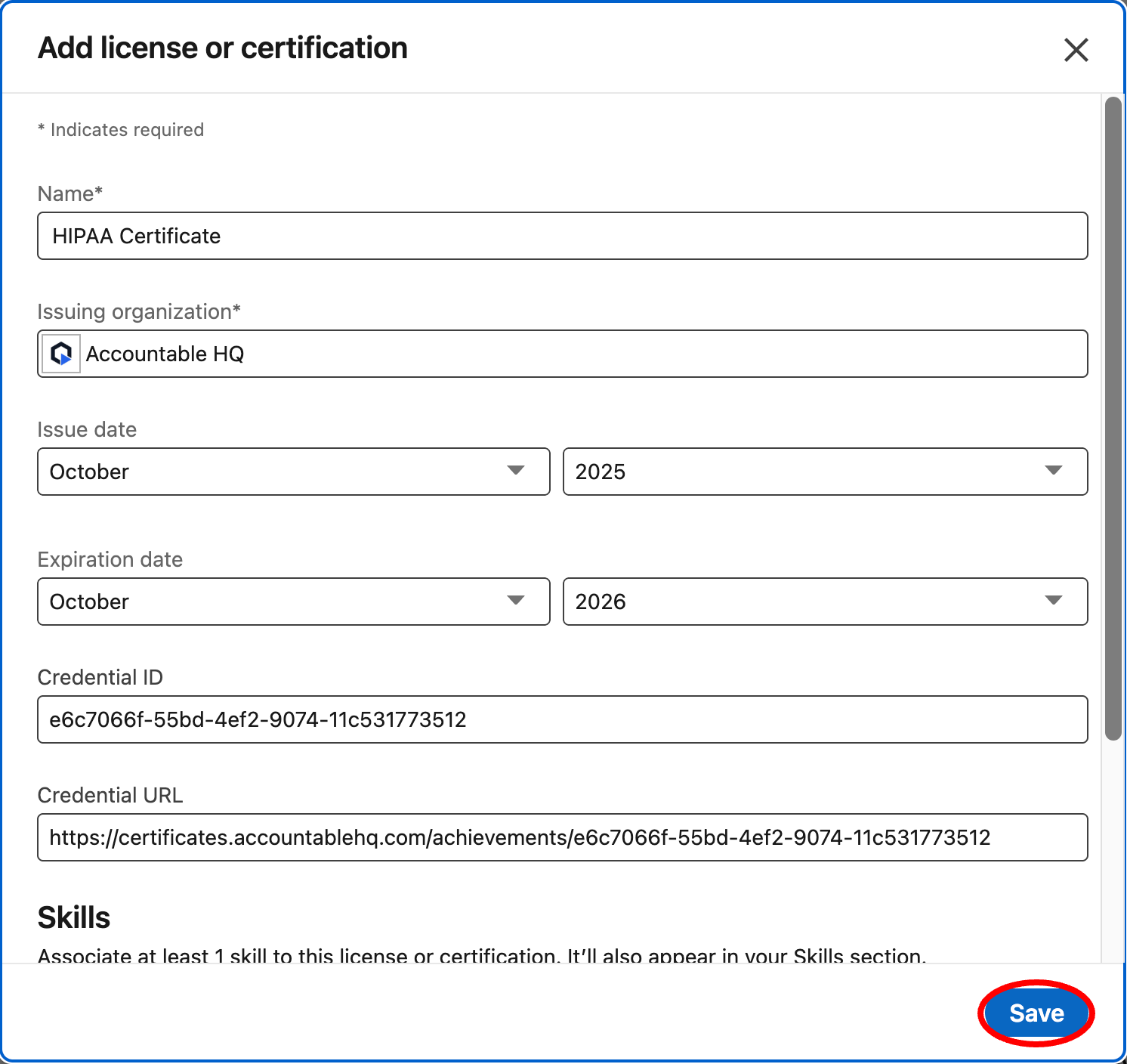 This will open LinkedIn in a new tab. Review Details > Select Save
