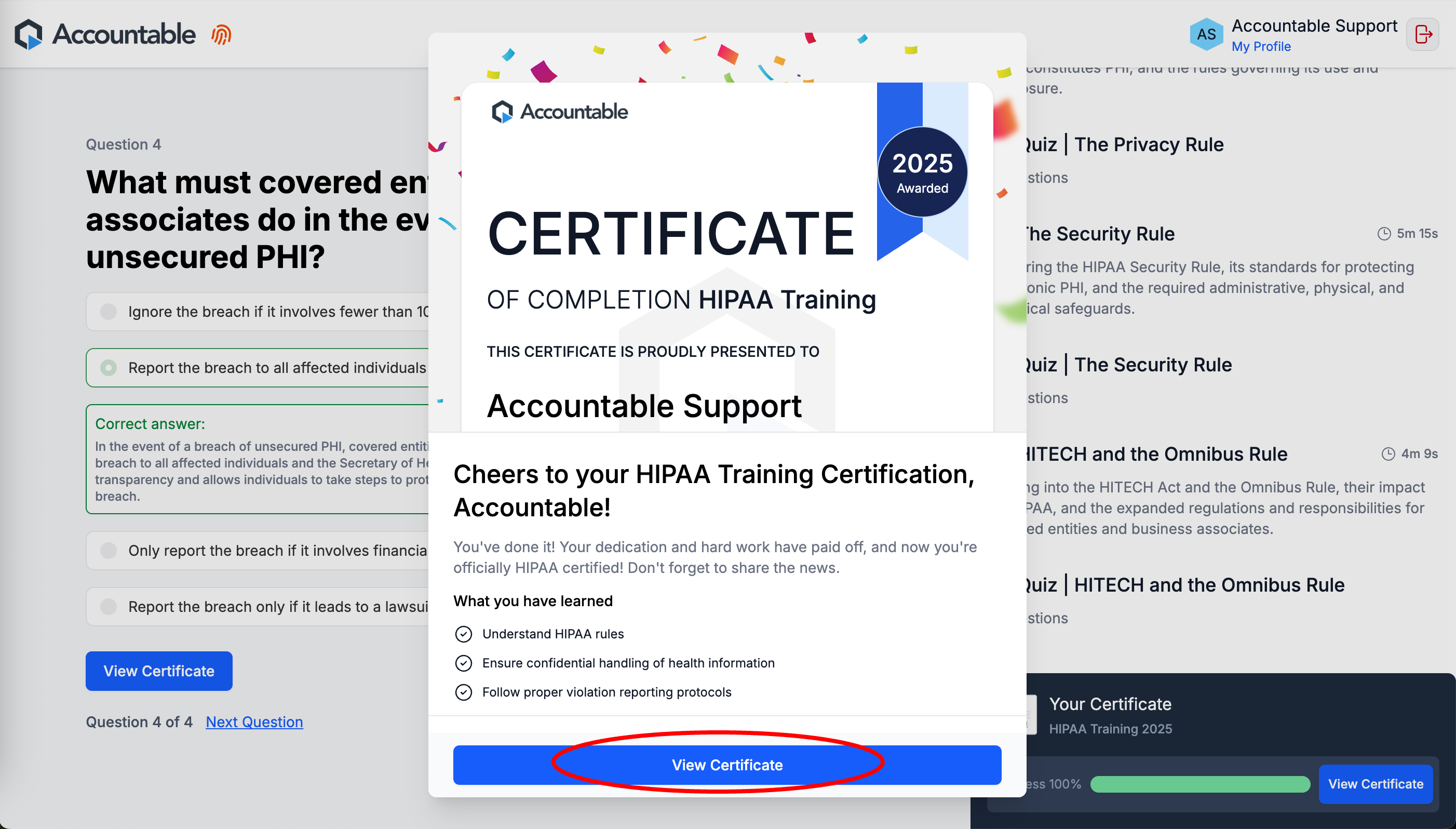 Congratulations! You are one step closer to ensuring your organization is HIPAA compliant, and that you're up to speed on everything they need you to be.