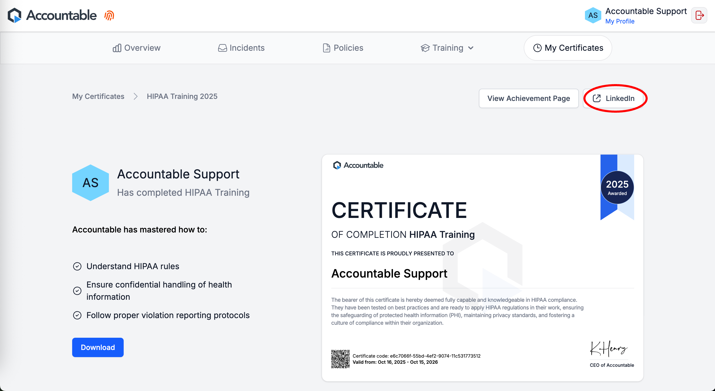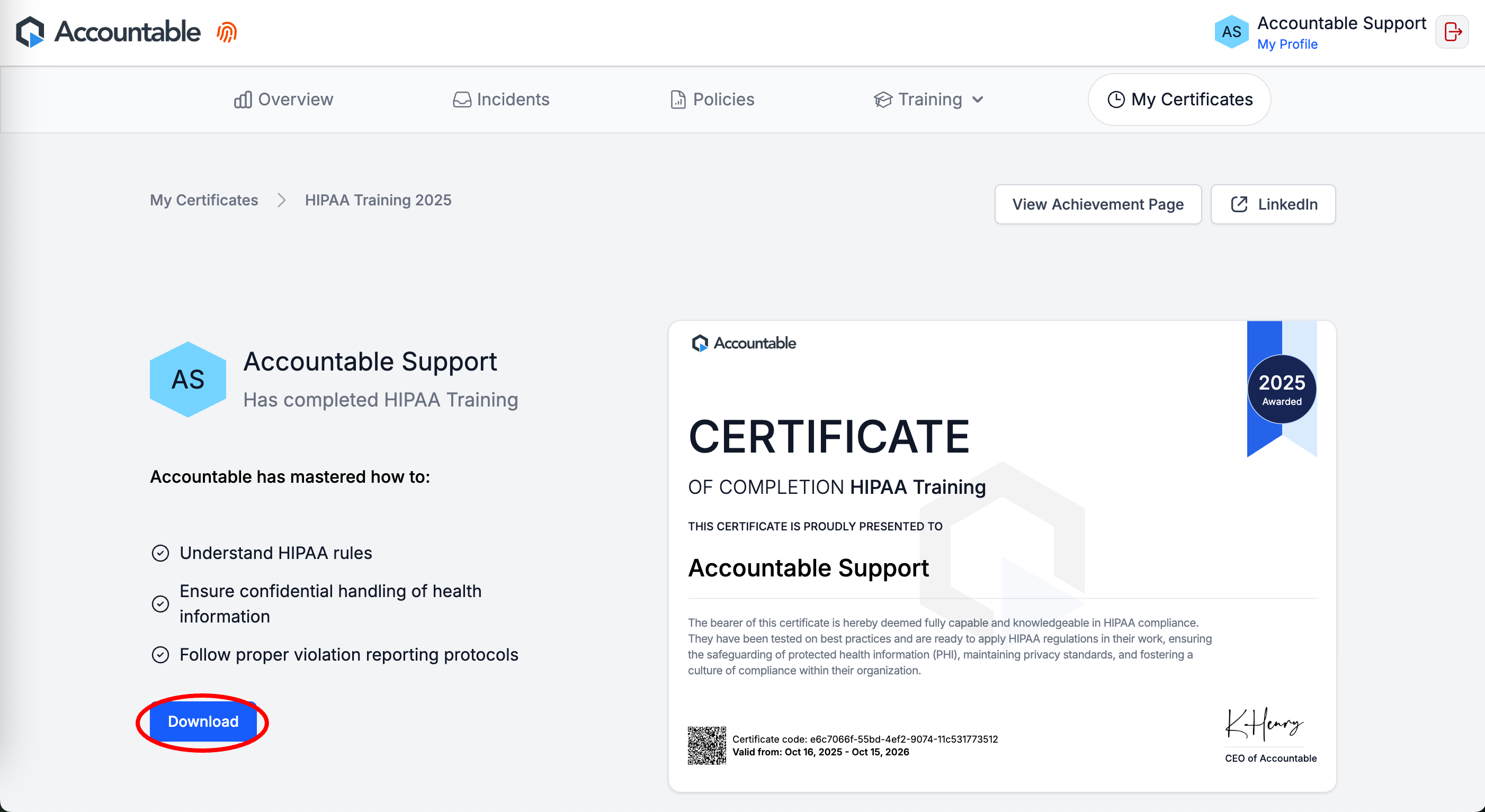 Once you pass the Training Course, Select View Certificate