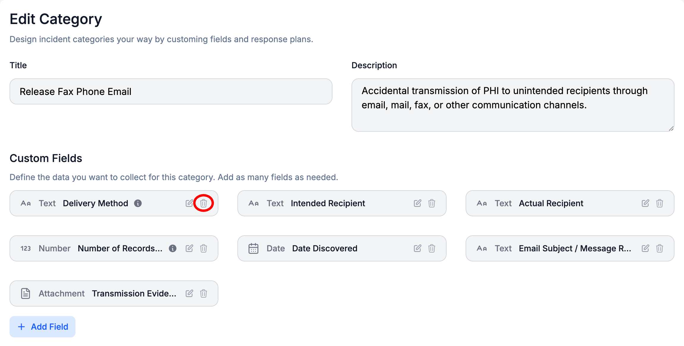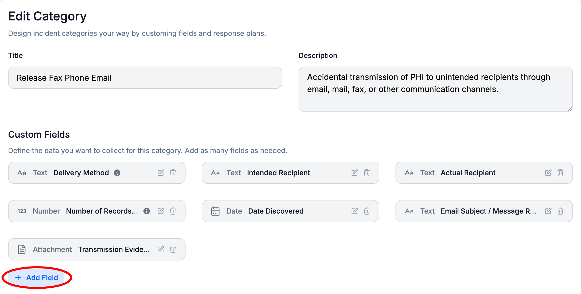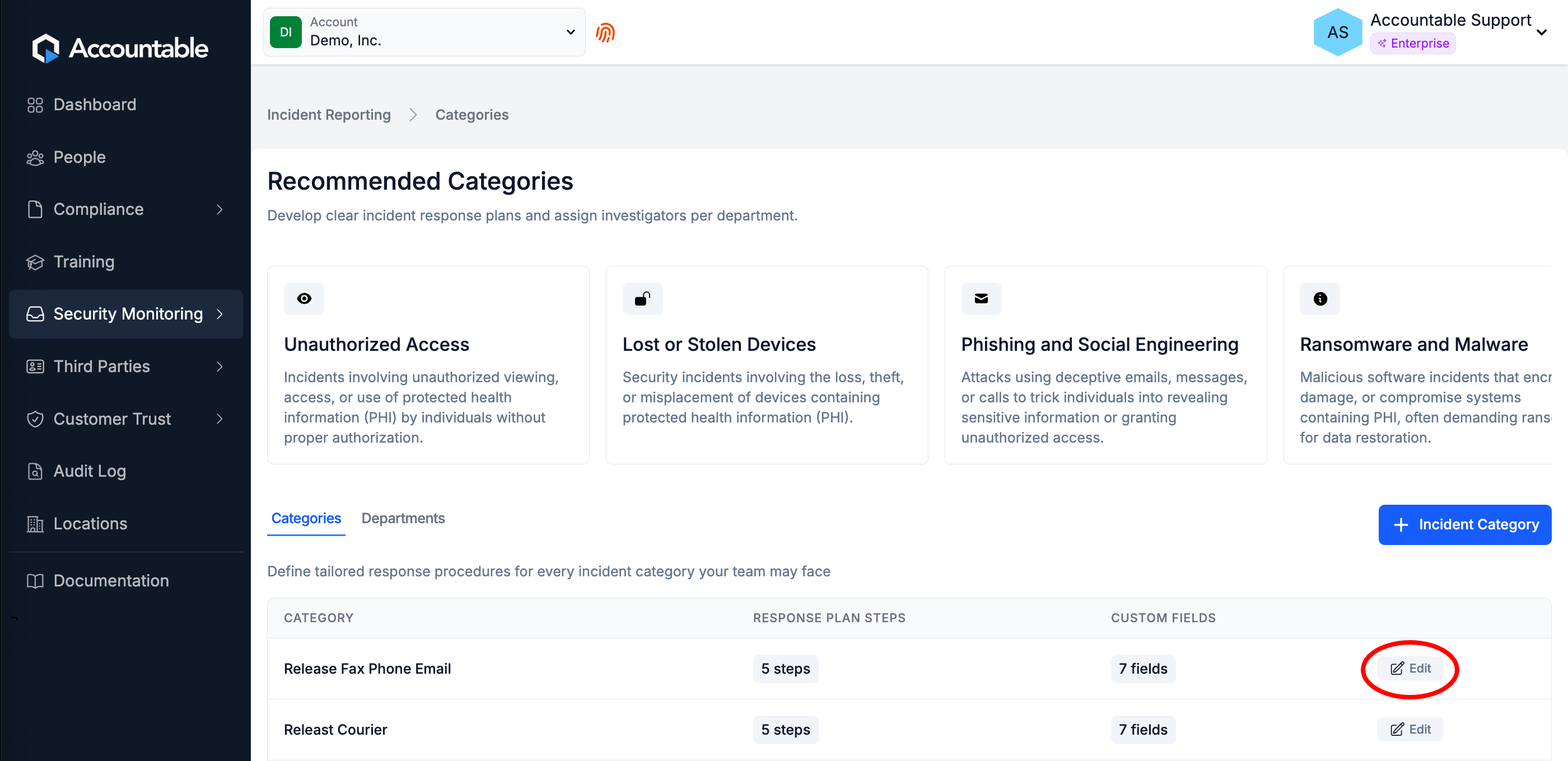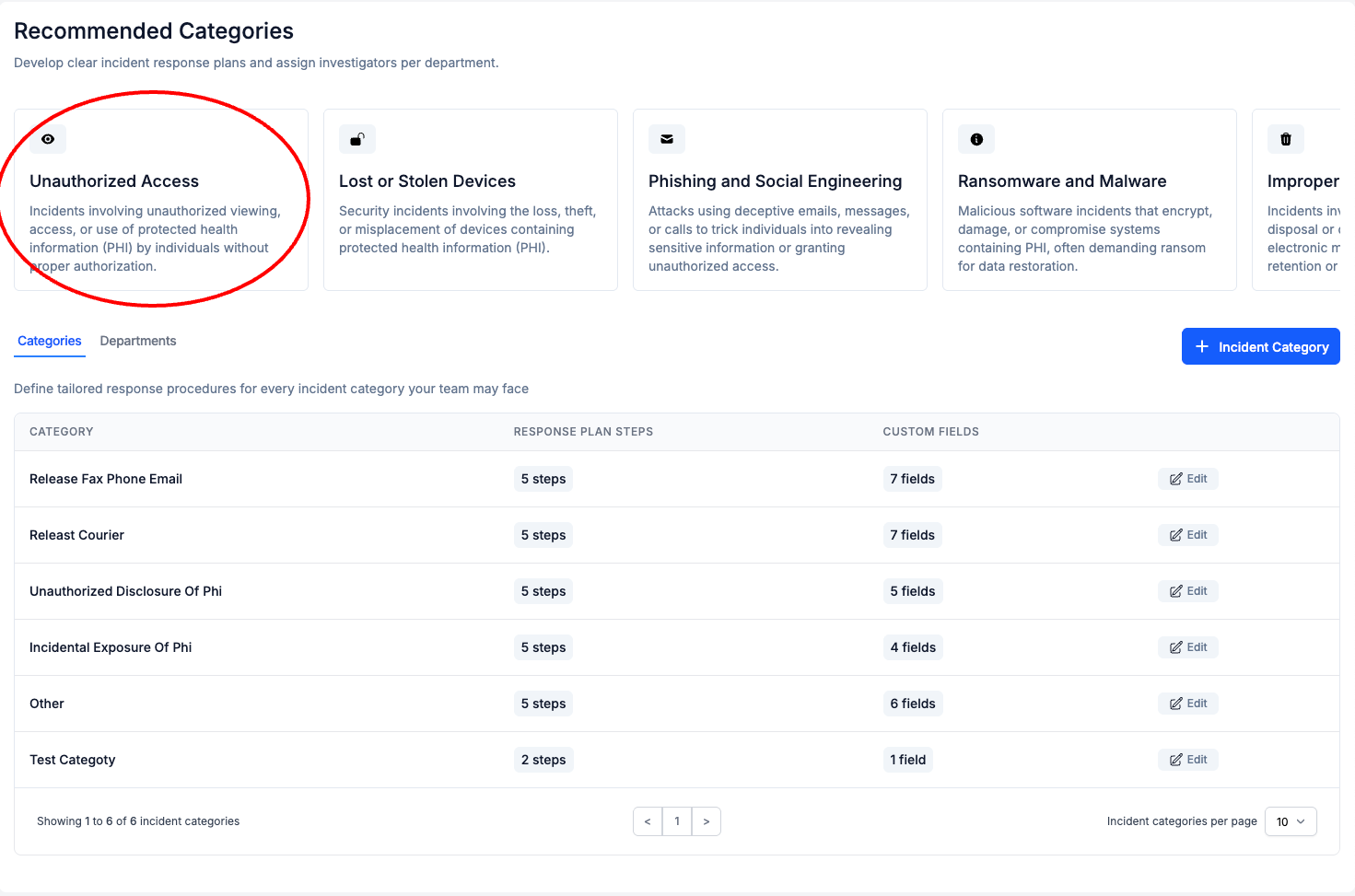 - Optionally, Edit the Incident Category