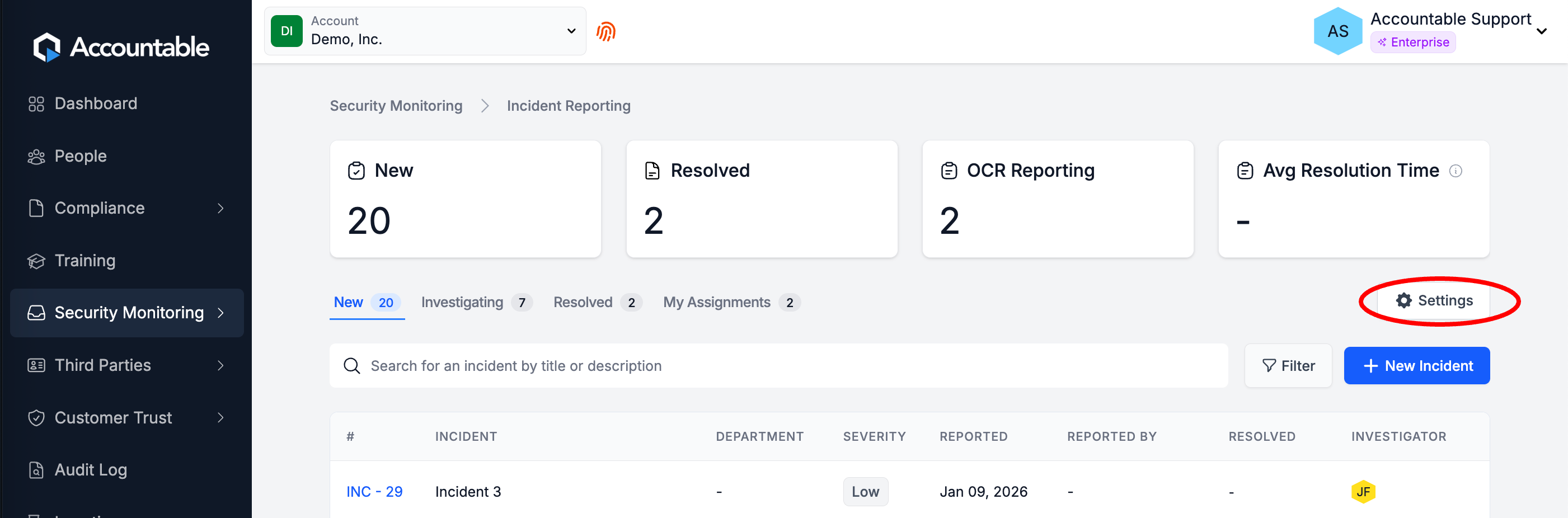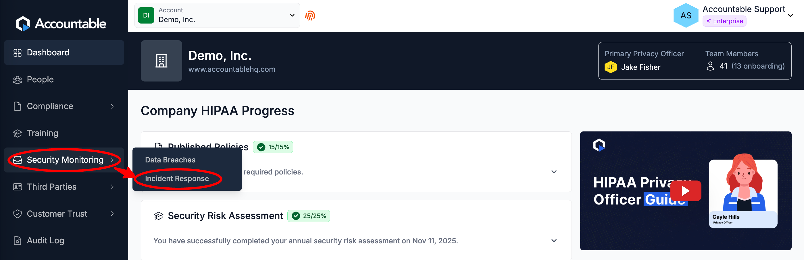 From the Dashboard, Select Security Monitoring > Incident Response in the left sidebar