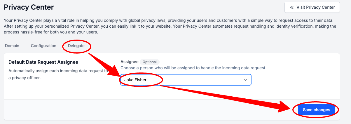Select the Configuration Tab > Complete the below configurations > Select Save Changes > optionally, Select Visit Privacy Center if you would like to see how your updated Privacy Center looks