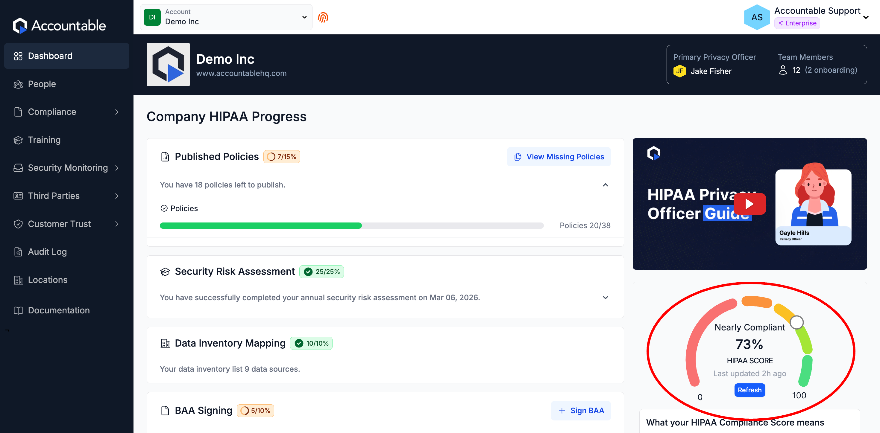 Accountable HIPAA Compliance Score